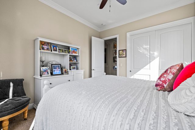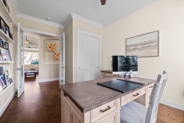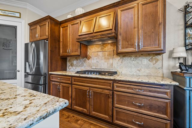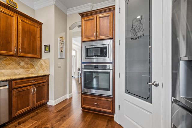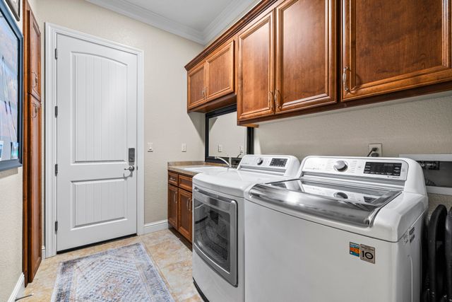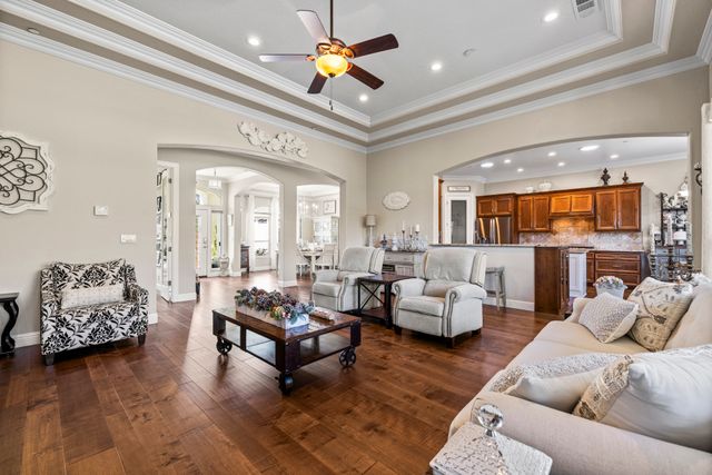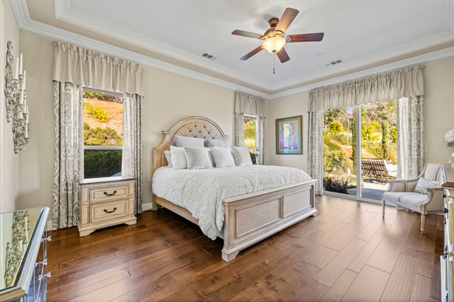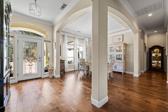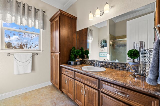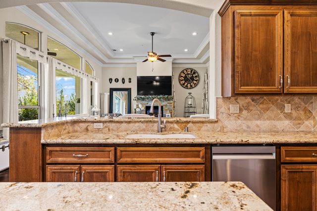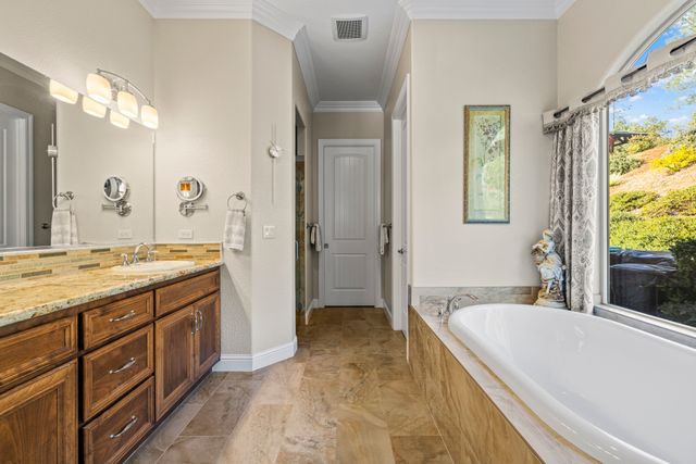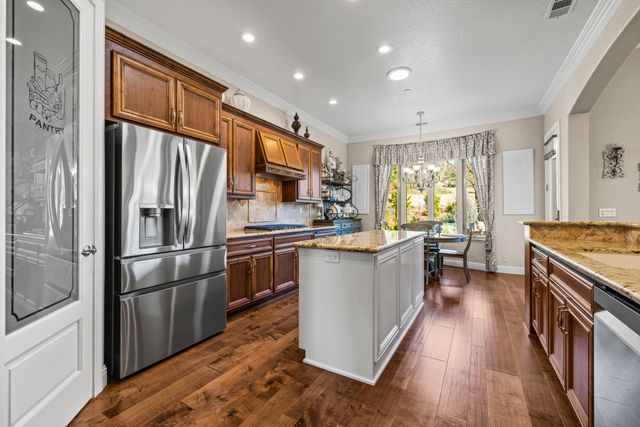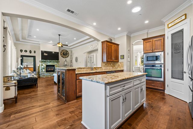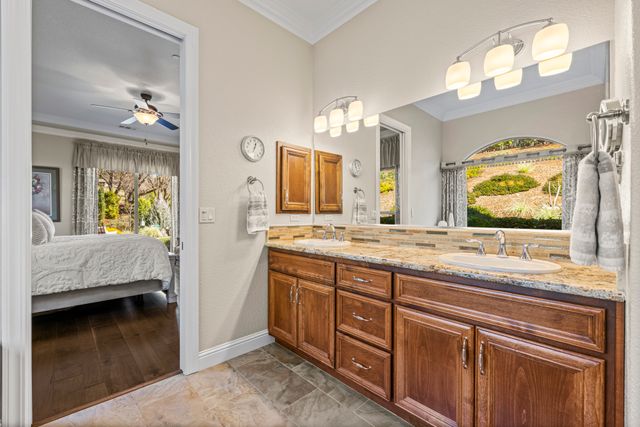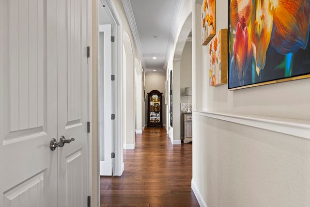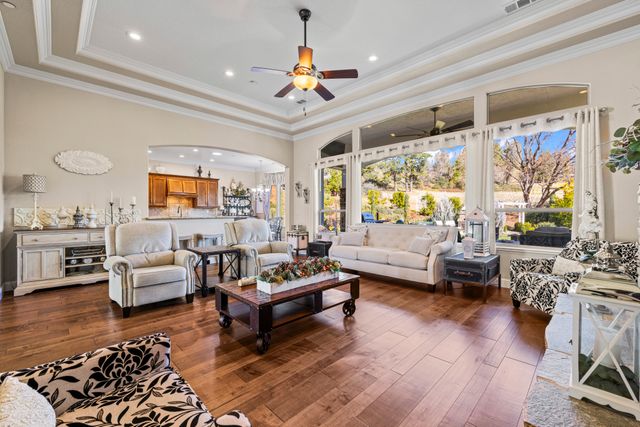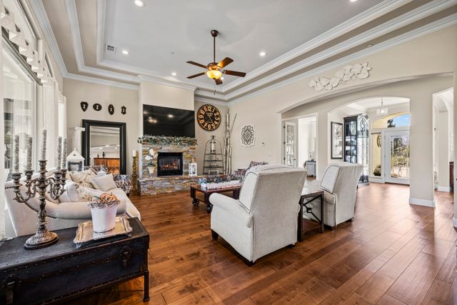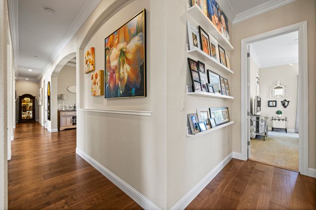 Nestled on a private road among newer custom homes, this meticulously maintained single-story residence exudes pride of ownership. Built in 2015, the home sits on over an acre of lush, fully irrigated gardens with vibrant flower beds and custom all-season landscaping, offering breathtaking sunset and canyon views and a serene backdrop of the community-owned open land. Inside, high ceilings, solar tubes, and expansive windows fill the home with natural light, while tray ceilings, crown molding, and hand-scraped hardwood floors add timeless elegance. A popular floor plan showcases a stunning stone fireplace, upgraded fixtures, and an inviting open layout perfect for entertaining. The spacious primary ensuite is a true retreat, featuring a luxurious bath, walk-in closet, and serene garden views. Outside, a covered entertainer's patio provides the perfect space for year-round gatherings, complemented by a second stone fireplace and romantic gazebo for cozy evenings. The oversized three-car garage, complete with custom cabinetry, adds convenience, and the home is generator-ready for peace of mind. Located in popular Camino neighborhood in the Apple Hill area with access to the El Dorado Trail, this quiet retreat on a premium lot seamlessly blends style, comfort, and natural beauty.
